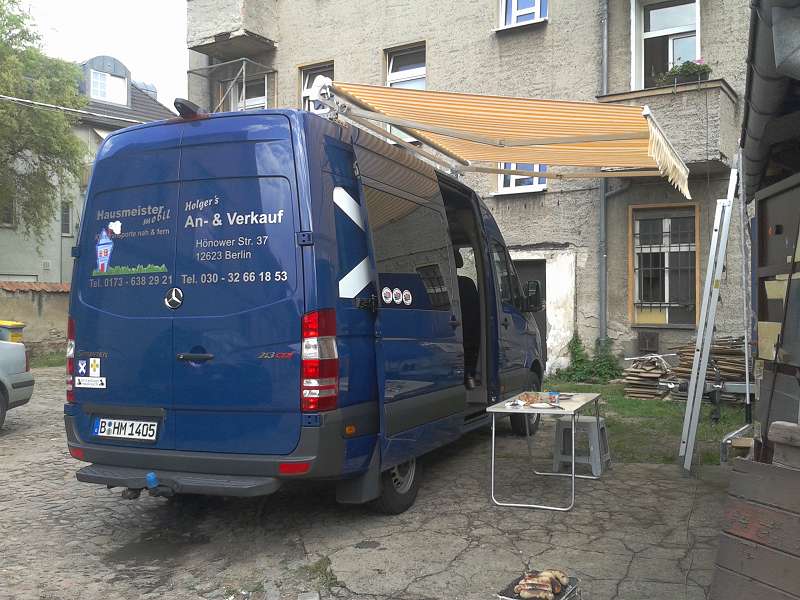 Es gibt auch eine Spar-Variante, kostet unter 100 €. Während der Fahrt muß sie abgenommen werden und im Sprinter verstaut werden. Am Urlaubsziel angekommen, einfach nur einhängen und sichern. Voraussetzung ist das Vorhandensein der C-Schiene. :wink: