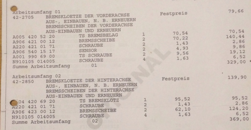 Der freundliche ruft hier für die stolze Summe von 1300 Euro Brutto auf . Scheiben und Beläge vorn und hinten.