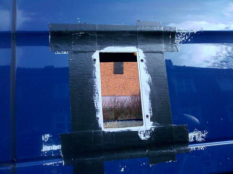 Wichtig ist dann, um Wasser eindringen zu verhindern, du Sika benutzt. Den farblichen Abgleich zur Karosse, stelle ich mal hinten an.
