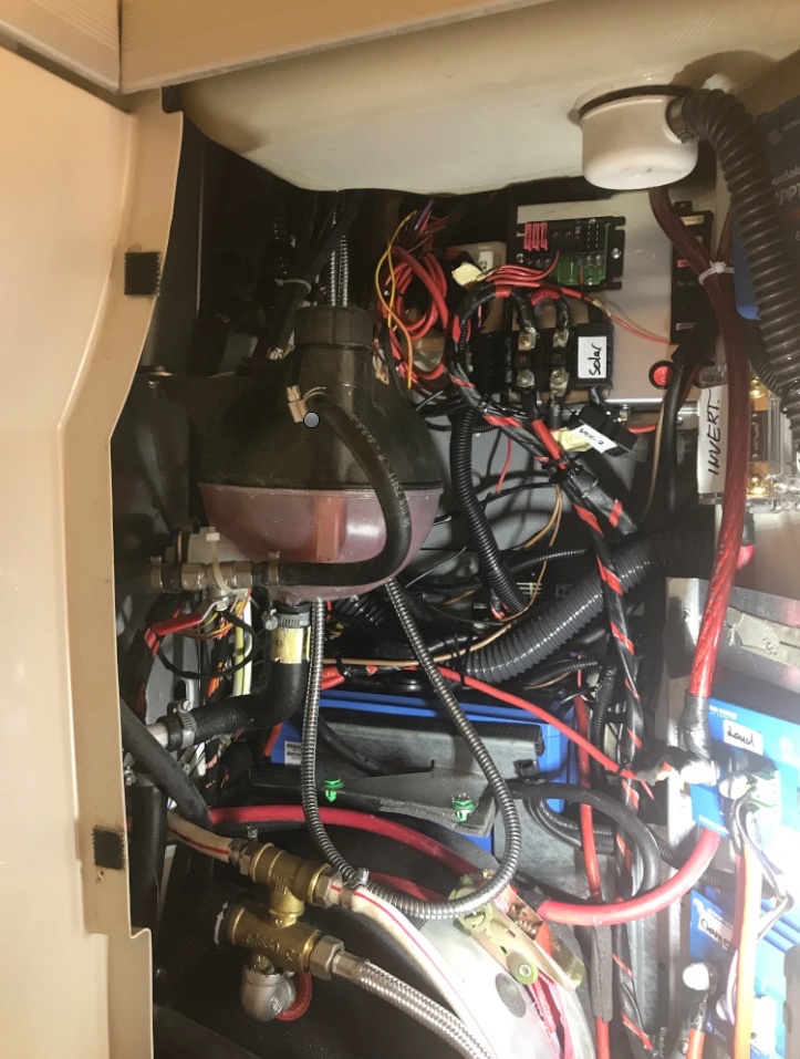 Ich habe aber keine Ahnung, was als Boiler verbaut ist. Ich kenne vom Sehen nur das Ausgleichsgefäß für die Flüssigkeit (Glykol), die durch die Heizkörper und die Schleifen im Fußboden fließen (kugelförmig, oben schwarz, unten rot). Ganz unten sieht man noch ansatzweise das, was ich für den Boiler halte, mit einem Spanngurt fixiert.