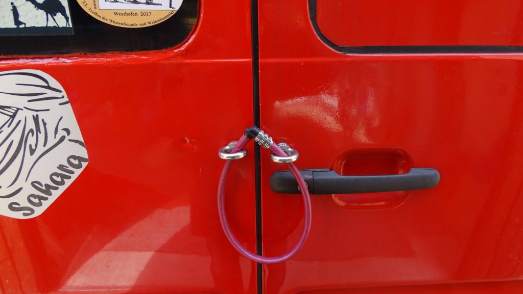 Aber Spaß beiseite, ich schaue mir die 94 Beiträge gerne mal an. Einiges fällt aber von vornherein aus, da die Fahrertür ja offen bleiben muss und man so immer den Zugang von innen hat. Eine provisorische Trennwannd ist in meinem Fall leider nicht möglich.