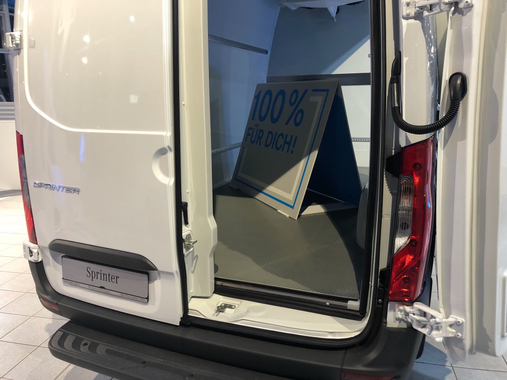Wir haben in unserem Fuhrpark einen Sprinter des aktuellen Modells mit 260° Öffnung an den Hecktüren.