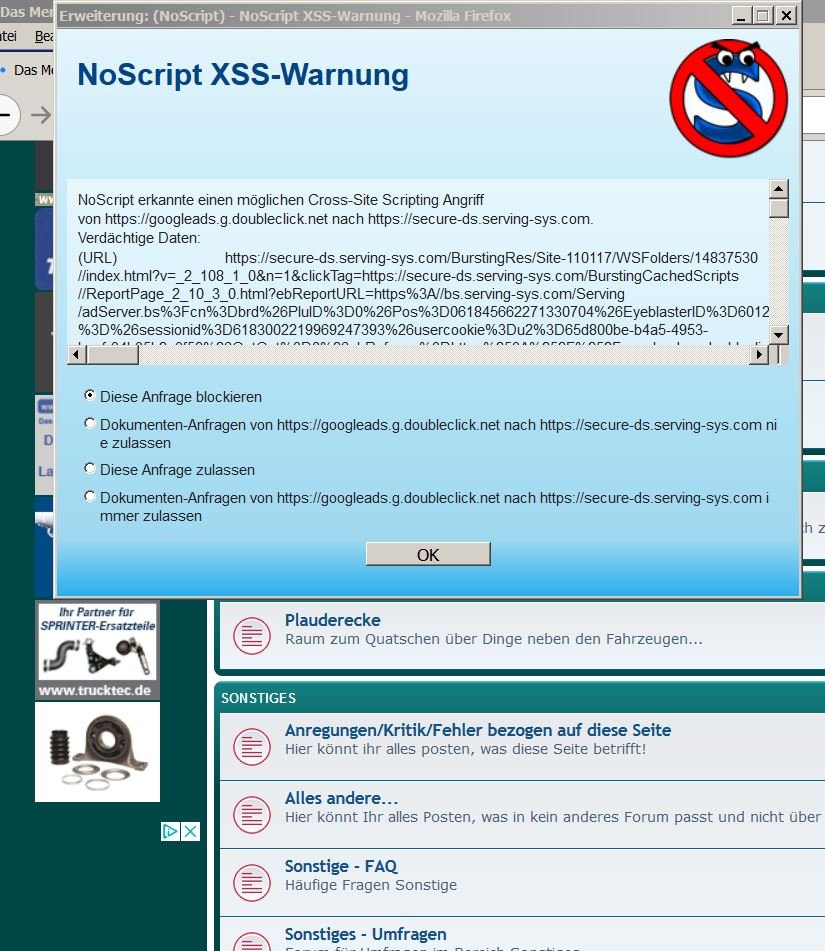 das kommt nicht vom Forum. Steht auch oben drüber. Das ist eine Erweiterung in Deinem Firefox installiert, die scheinbar nicht korrekt / viel zu scharf funktioniert.