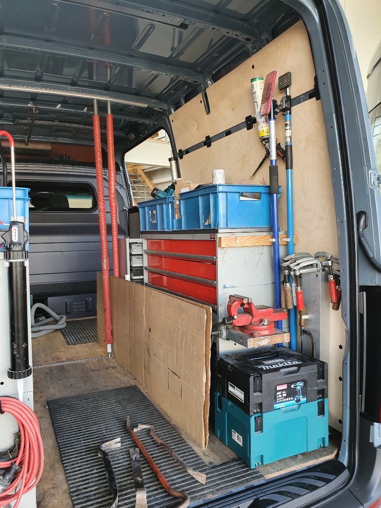 Mehr kann ich ab nächste Woche berichten wenn das Fahrzeug produktiv im Einsatz ist. Wir haben heute begonnen die Regale und Maschinen vom alten in den neuen umgebauzubauen