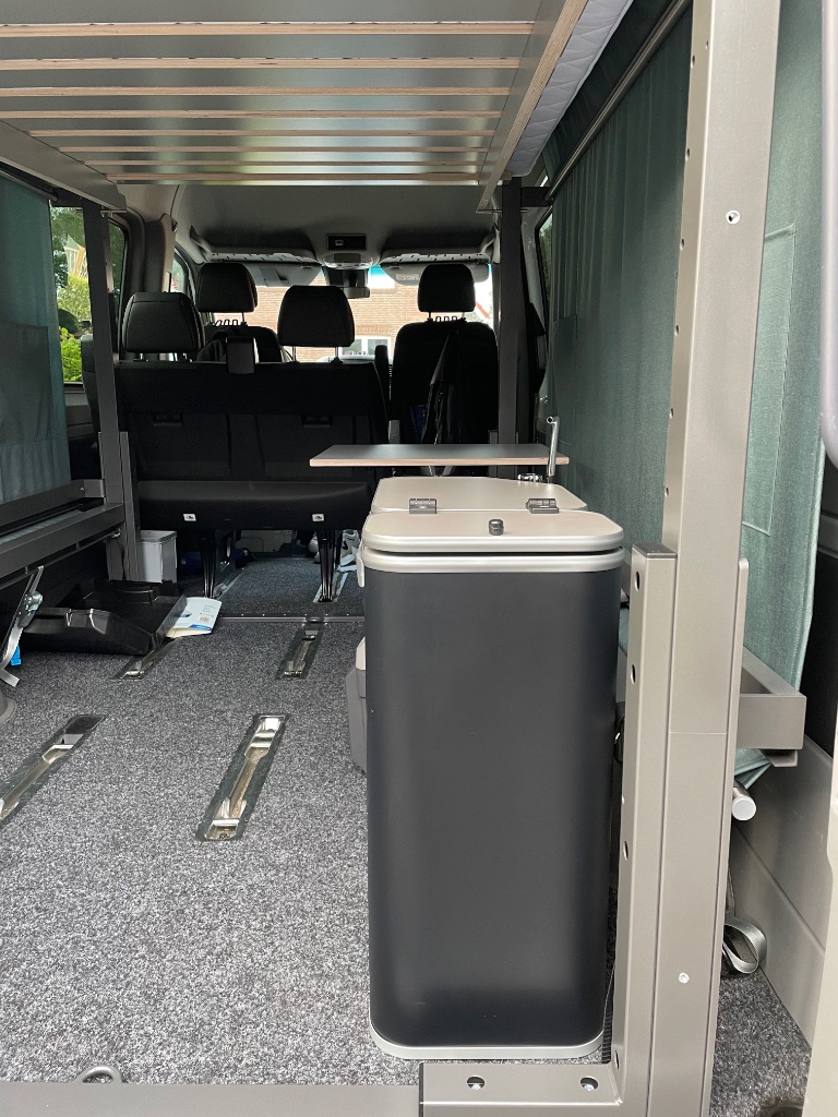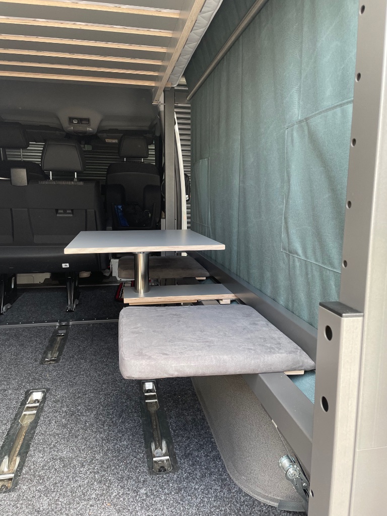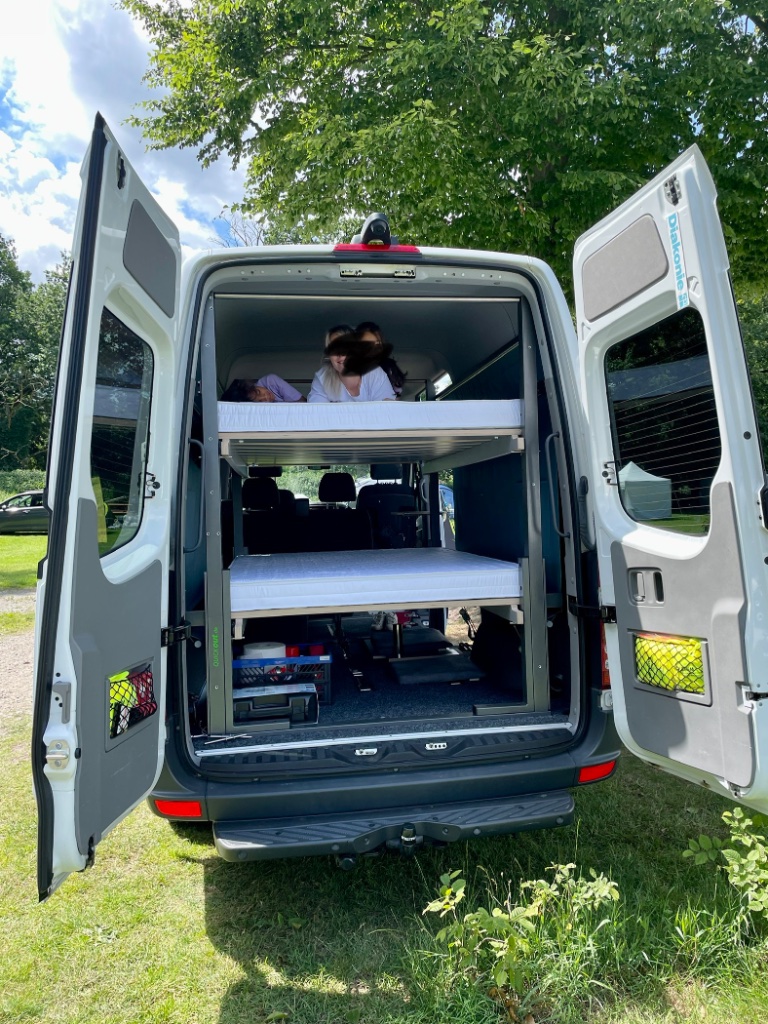 Der Quickout Ausbau ist als Besonderheit von uns mit 2x Betten gebaut worden. So haben wir in Summe 8 Betten dabei