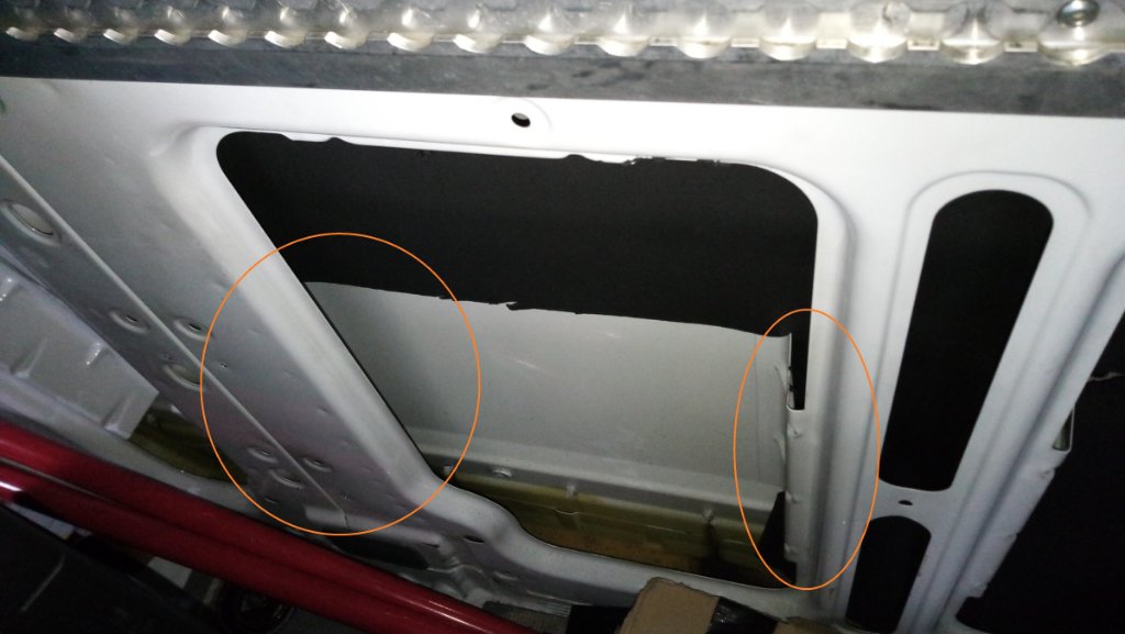 An der rechten Verstrebung jedoch würde ich wegsägen. Allerdings siehst du den geklebten Winkel an die Aussenhaut. Das verhindert das Wabbern / Vibrieren des Aussenblechs. Wenn du den Winkel wieder etwas weiter rechts einklebst, dann sollte das zusammen mit einer aufgeklebten Alubutylplatte auch gut sein. Ist also das Gleiche wie bei den Verstärkungen an den Fensterverblechungen.