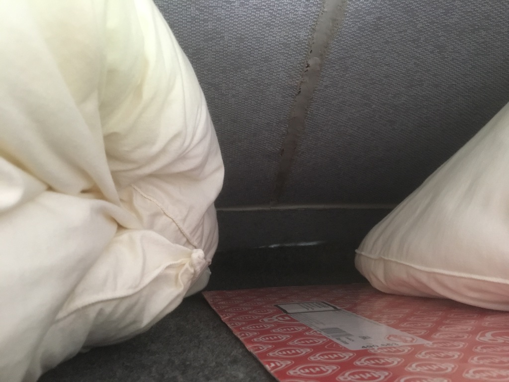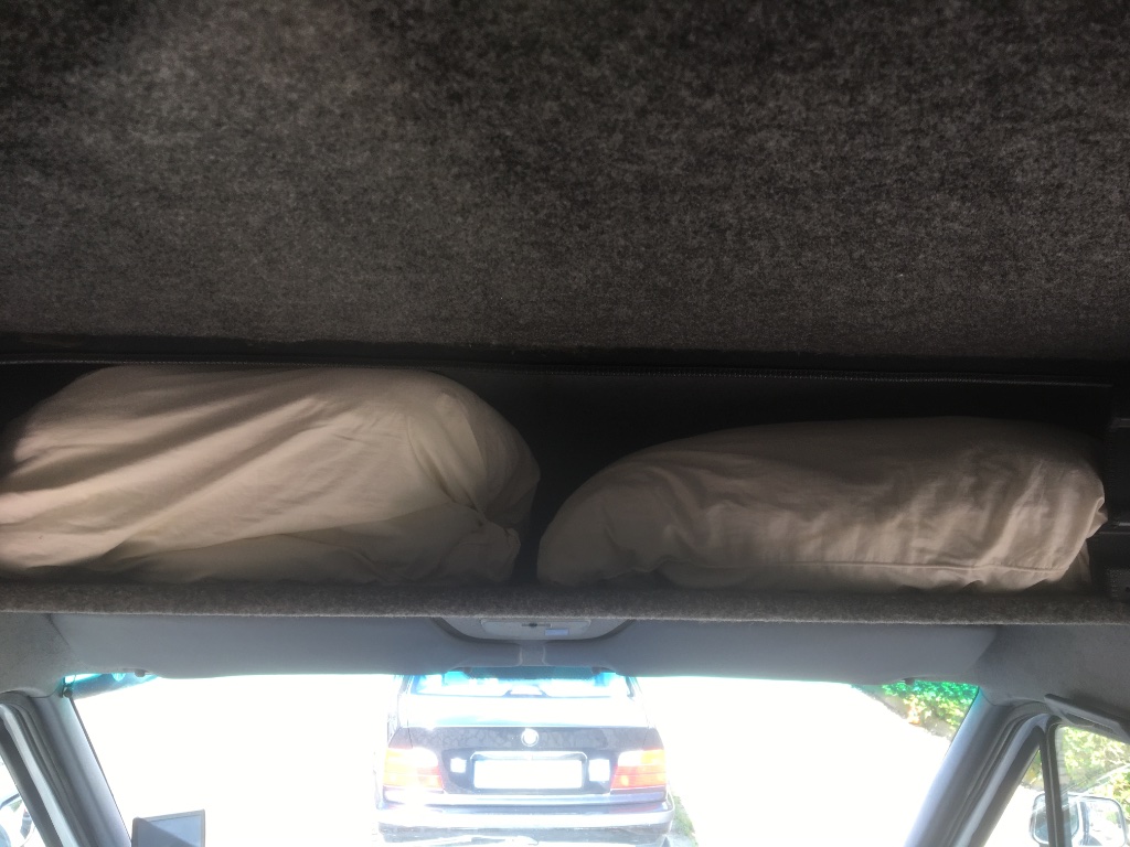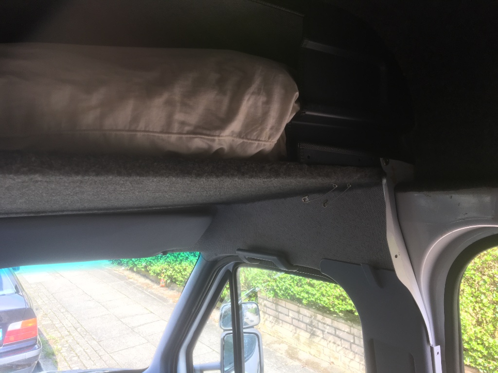 Doch dann passte die Dachverkleidung nicht rein. Also in zwei geteilt und eingesetzt. Da das Bettzeug immer drin ist, ist es für mich ok.