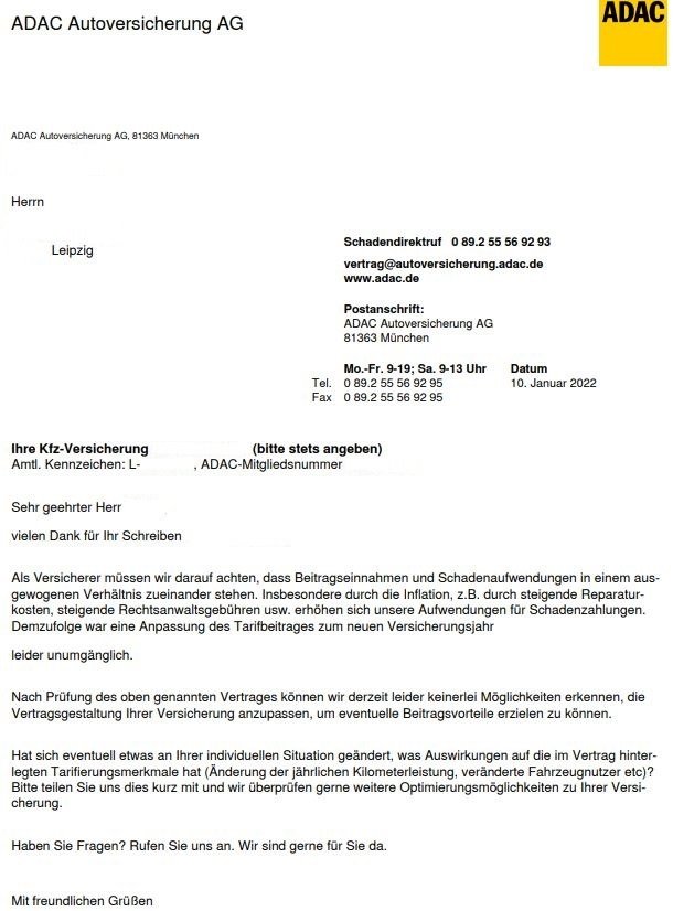 Mein Sprinter war 2023 und ist 2024 mangels günstigerer Alternativen weiterhin bei der ADAC-Autoversicherung versichert; VK von SF11 auf 12 + TK von SF29 auf 30 = von 384,59€ auf 428,65€.