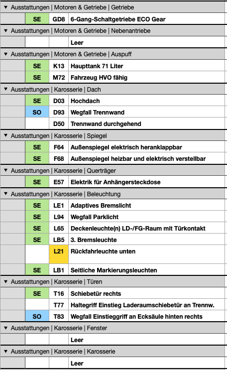 hier meine Konfiguration für das Neu-Fahrzeug: