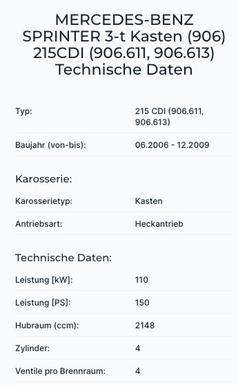 Mercedes Sprinter 2 (Typ NCV3, Baumuster W906) & VW Crafter 1 - ab 2006 bis 2017 bzw. 2018