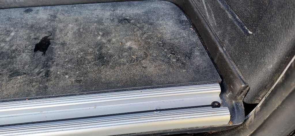 - Die Führungsschiene des Fliegengitterplissees ist eine blöde Stolperfalle. Deshalb habe ich einfach ein Brett in der entsprechenden Höhe dahintergelegt, damit alles in etwa eben ist.