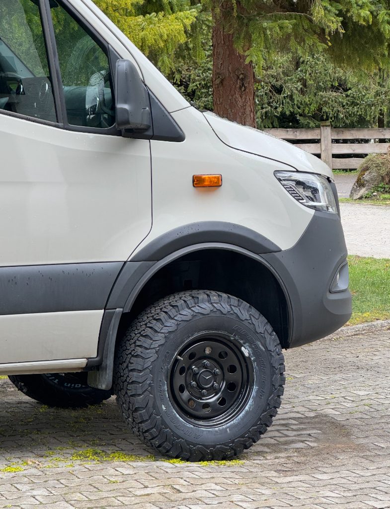 da wir uns neue Felgen kaufen müssen, und wir momentan die Mercedes Stahl Felge in schwarz 6,5 x 16 ET 54 mit 245/75/R16 BF Goodrich Reifen fahren, sind wir am überlegen uns die Felgen von DOTZ Modular dark 8x16 ET37 zu kaufen.