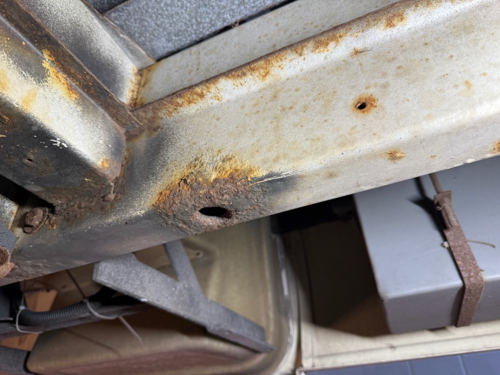Zustand: Der Unterboden weist deutliche Rostspuren auf – teils flächig, teils punktuell tiefer gehend.