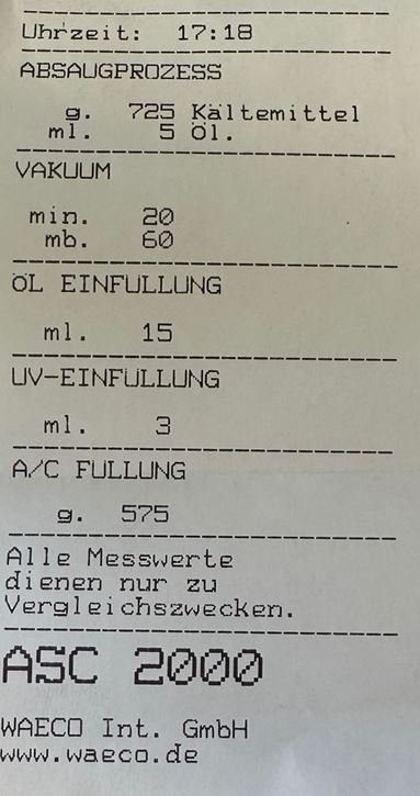 Beim Neubefüllen hat der Automat 725 gr Kältemittel abgesaut und 575 gr nachgefüllt.