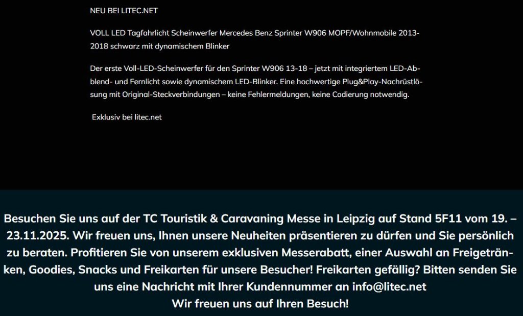 Im Januar bekommt litec deren Lieferung aus Taiwan, bekomme ich Bescheid, um deren Scheinwerfer in meinem Sprinter zu montieren.