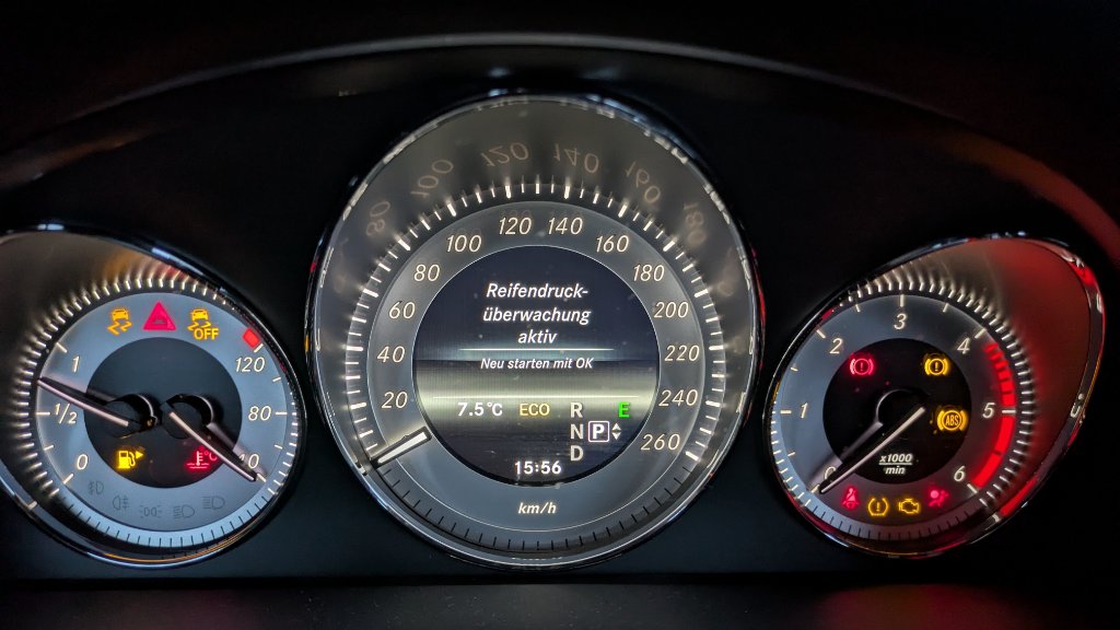 Mein 906er hat kein RDKS, um es aber zu erleichtern habe ich die Anzeige von meinem GLK genommen. Das System ist schon sehr alt, damit lässt sich aber kein Umsatz generieren - Lobbyismus? - und darum wurde es nicht flächendeckend eingeführt. Sogar der 453er Smart hatte genau dieses System an Bord und es hat perfekt, aber zu einfach funktioniert!
