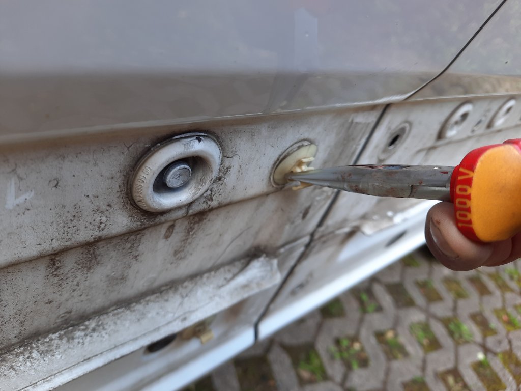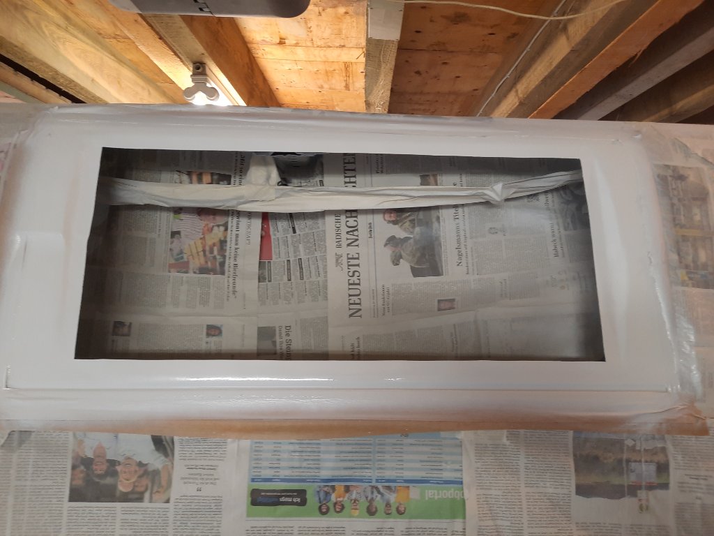 Bevor das erste Loch reinkam, wurde alles abgehängt, damit die Sägespäne nicht überall rumfliegen.
