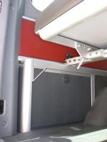 Die Querverstebung der Bettenauflage versteift das Sprinterheck genug um auch bei Regen Ruhe in die Hintertüren zu bringen,