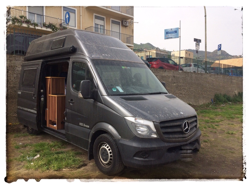 Und dann noch die "Dreckskarre" nachdem ein heftiger Sturm Regen und Saharasand über Cefalu auf Sizilien abgelassen hat.