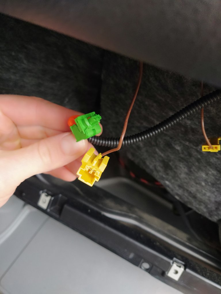 Grüner Stecker direkt an Airbag Kasten. Das ist er. Nicht gelb...