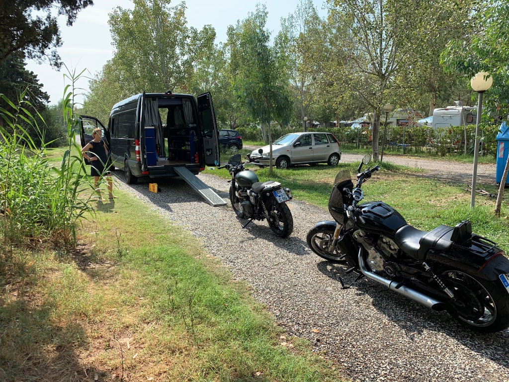Ich nutze zum Motorräder einladen eine Gerüst-Diele aus Metall, drei Meter Land und ca 35cm breit. Das reicht auch für meinen 260er Hinterreifen. Hab das Teil am Ende etwas ausgeklinkt und lege es mit Gummimatte auf der Stosstange ab. Das Mopped schiebe ich mit laufendem Motor bis über die Kante ...