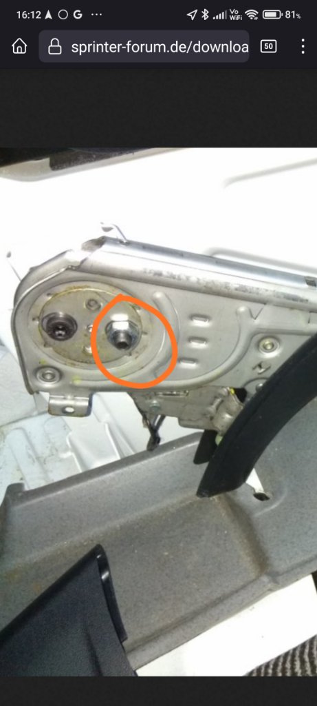 Aus starkem Flacheisen, ggf. Edelstahl ein "U" biegen und dieses so an der Sitzkonsole befestigen, dass der Handbremshebel nach dem Anschrauben nicht mehr am Drehteller des Sitzes streift! Handbremsseil bleibt in Länge unverändert! Bei TÜV-Abnahme des Reisemobilausbaues gab es keinerlei Beanstandungen! Beim Drehen muß das Fz eben auf der Ebene stehen und 1. Gang eingelegt sein, bzw. Automatic auf Parkstellung!