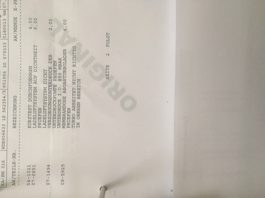 Die Frage ist ob die MB-Werkstatt den Turbo tatsächlich geprüft oder nur den Fehlerspeicher ausgelesen hat.