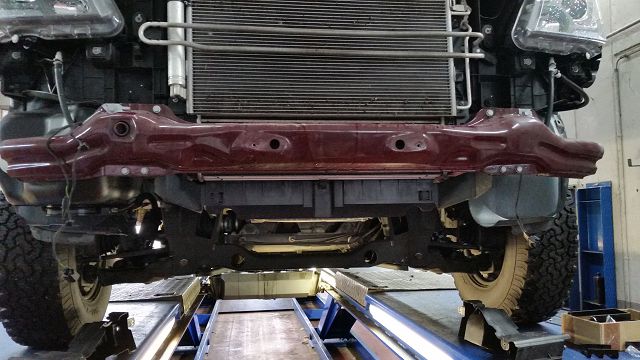 ... und genau da liegt der Hacken, oder eben nicht ... Bild ist von der Front an meinem bei der Montage des Unterfahrschutz. Gut zu sehen das Gewinde links im Bild beim Querträger, rechts ist da nichts ... und dort etwas abändern ... na ja ...rainer k hat geschrieben: Da bleibe ich lieber bei den smarten Überlegungen zur Anbringung von vorderen zusätzlichen Bergehaken / -ösen)). Eine Bergeöse auf der linken Seite hätte auch den Vorteil, dass man die Kraft beim Ziehen auf beide Ösen verteilen kann.