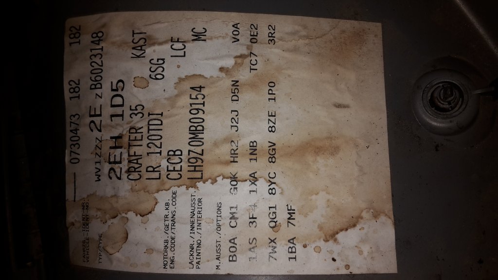 Hallo, ich habe jetzt schon eine Weile die Suchfunktion hier bemüht, aber bin nicht fündig geworden. Kann ich irgendwo eine Liste mit den Ausstattungscodes für meinen Crafter finden? ich habe mal ein Foto des Aufklebers mit dazugestellt. Leider hat der Vorbesitzer seinen Kaffee durchs Armaturenbrett laufen lassen...