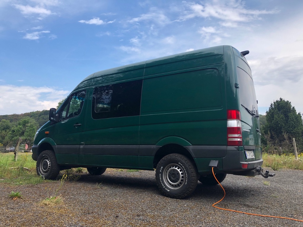ich habe hier länger mitgelesen und war irgendwann motiviert genug, um auch einen Umbau zu wagen. Dazu habe ich mir letztes Jahr einen 319 4x4 besorgt und vor ein paar Wochen (ganz knapp vor dem ersten Urlaub :) ) auch endlich die WoMo-Abnahme geschafft. Der Wagen war vorher bei einem Imker in Betrieb und ist erstaunlich gut ausgestattet. Hat knapp 200 tkm auf der Uhr und steht noch ganz gut da. Gewicht ist natürlich ein Thema, Leichtbau und Weglassen ist angesagt - aber das nehme ich sportlich. Mit derzeit ca. 2860 KG ohne Fahrer, aber vollen Tanks (100L Diesel, 30L Wasser) passt das bis hier. Startgewicht war ca. 2520 KG.