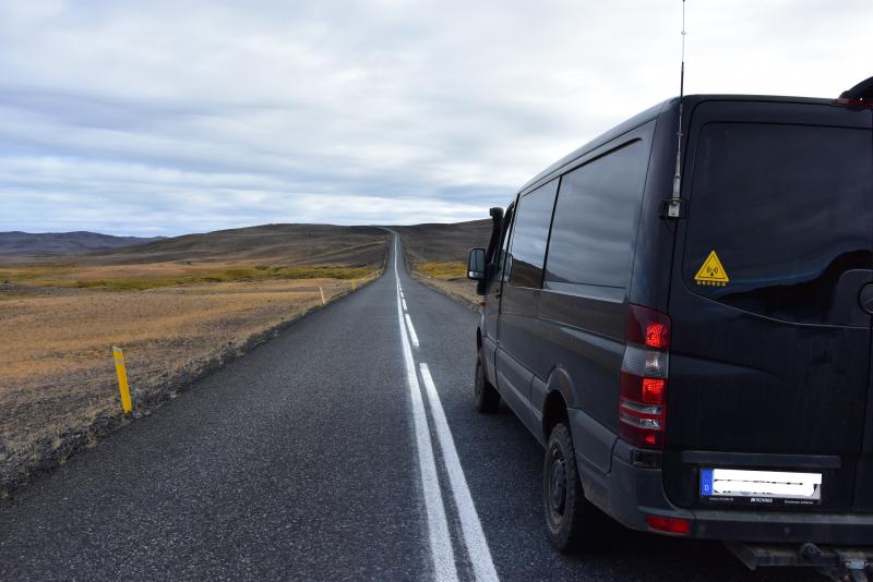 Der sich anschließende weitere Verlauf der 32 wurde immer einsamer. Irgendwann kam der Abzweig zum Landmanalaugar und das Gerüttel nahm seinen Lauf. Naja...und ich musste heute mal kurz furten. War völlig easy. Das Wasser ging dem Sprinter noch nichtmal bis zum Schweller. Anschließend bin ich ein wenig durch das Landmanartal gelaufen. Aber ehrlich...so richtig vom Hocker hats mich nicht gerissen. Ok...die Farben...ja...und ein bisschen Dampf aus der Erde....ich habs mir irgendwie spektakulärer vorgestellt. Zum späten Nachmittag stand dann die Überlegung ob ich auf dem dortigen CP übernachte oder wieder zurück fahre. Da das Wetter aufklarte, versprach ich mir noch ein paar schöne Fotos von der Strecke bei tiefer stehender Sonne und fuhr wieder mit ein paar Fotostopps zurück.