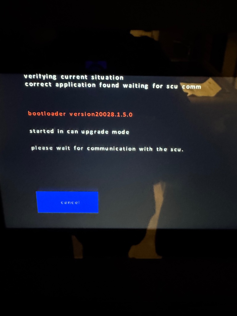 Gehe ich auf den Button „installieren“ geht er in eine Art Bootvorgang und möchte Verbindung mit der scu aufbauen. Findet aber keine Verbindung, startet dann neu und dann fängt das Spiel von neuem an. Ein Update ist jedenfalls nicht möglich.