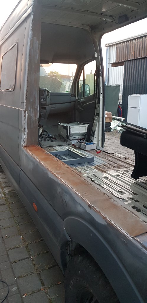 Danke für den Tip, das was jetzt Hellgrau oder Grün ist kommt alles wieder weg. Ich hab meine Halle voll und kann nur draussen arbeiten, deswegen kommt sofort nach jedem Arbeitsgang am Blech eine Rostgrundierung drauf. Wenn alles fertig ist spritz ich alle Hohlräume und Kanten mit Owatrol und Brantho durch, schleif alles nochmal bis aufs Blech runter und mach 2K Hempel Grundierung drauf.Schnafdolin hat geschrieben: 20 Jun 2023 20:33 Was für eine graue Grundierung ist das? EP? Ich würde statt dem Glasfaserspachtel zinnen. Der Spachtel kommt dir an dieser Stelle hoch. Heiß, Kalt, Kondenswasser, Kältebrücke .... das ist zuviel. Mit Zinn ist Ruhe.. Ich meine "richtiges" Karosseriezinn, nicht den Kunststoffmist, der als Ersatz angeboten wird. Der ist auch nur Spachtel. Zinn wäre dann die Opferanode auf dem Stahl, da rostet nix mehr.