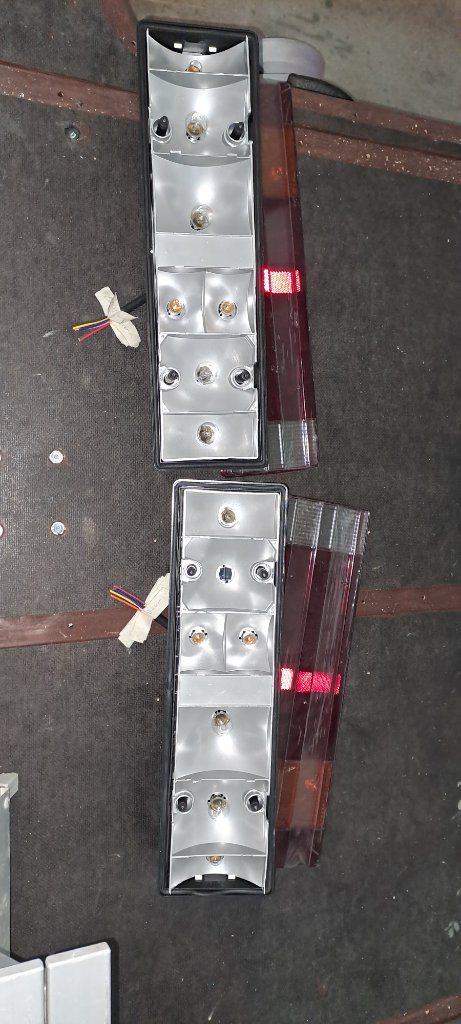 Ich werde die Lehne mal abnehmen und nachsehen. Vielleicht habe ich ja mal Glück. Ansonsten wird das irgendwann mal gemacht. Kabel für die Rücklichter sind alle beschriftet, bisschen im Schaltplan durchgefuchst: An den Rücklichtern ebenfalls alles beschriftet. Die Innenteile hatte ich mit Chromspray lackiert, damit es mehr Licht gibt. Wollte dann noch die Streuscheiben anbringen, da ich ja nicht mehr ans Innere der Leuchten muss. Leider ist dabei, bei beiden Lampen, jeweils die letzte Schraube abgerissen