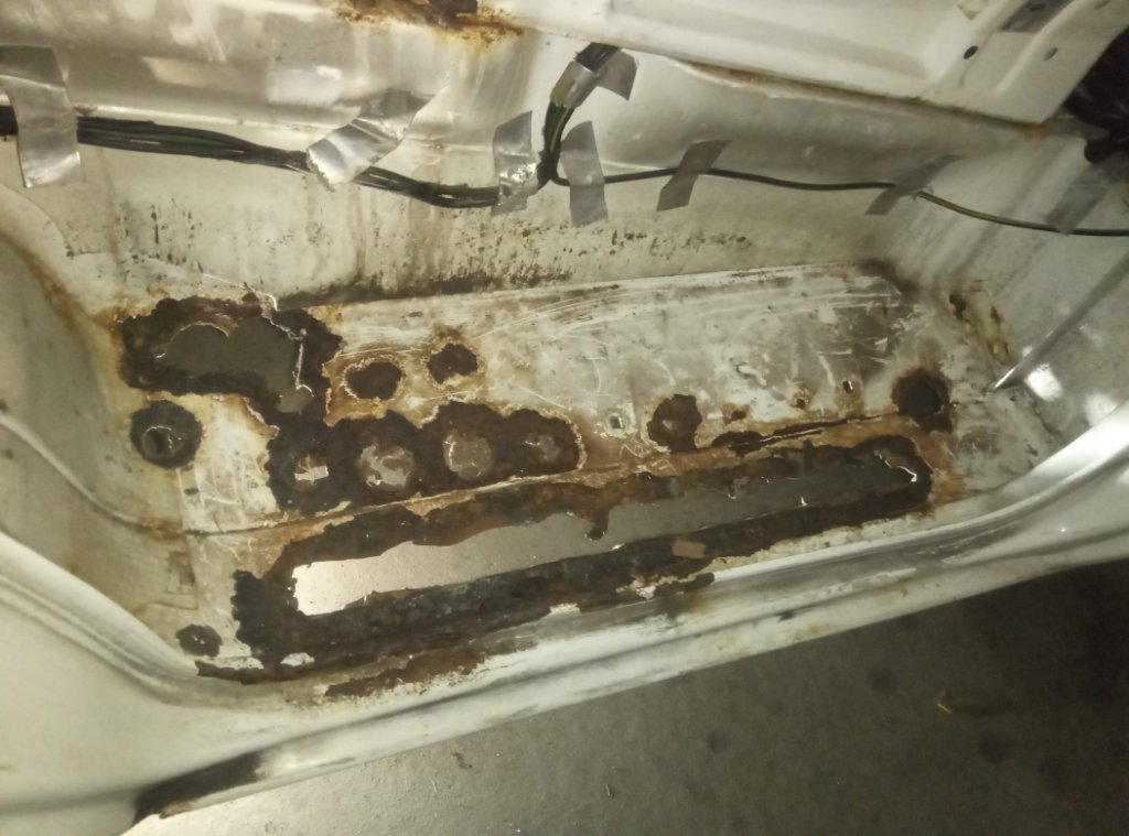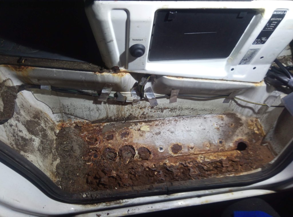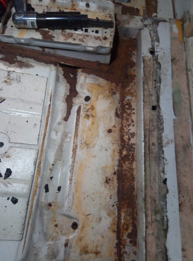 Auch will ich den Rahmen von unten ein wenig behandeln sowie paar Roststellen an den Türen und der Seite, siehe hier: Ich denke, um das so richtig vernünftig zu machen, müsste der alte Boden komplett raus, damit ich den Rahmen auch von allen Seiten vernünftig erwische. Jetzt will ich erstmal bisschen "pflaster drüber" machen, eventuell nur bis paar Zentimeter zum Boden hoch, damit ich nicht eventuell versiegeltes wieder aufflexen muss.