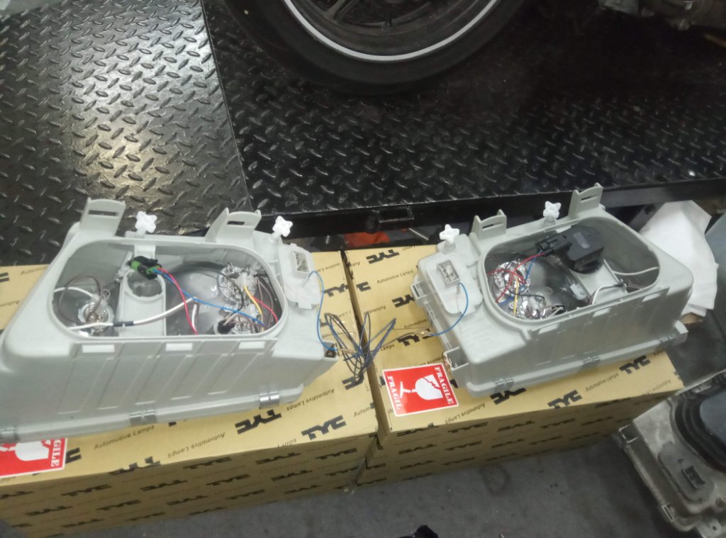 Ich habe ja die Vorbereitungen getroffen, die Leuchtweitenregulierung auf elektrisch umzubauen. Ich warte noch auf die 3. Zusendung, diesmal hoffentlich korrekter Gewindestangen für die Stellmotoren...