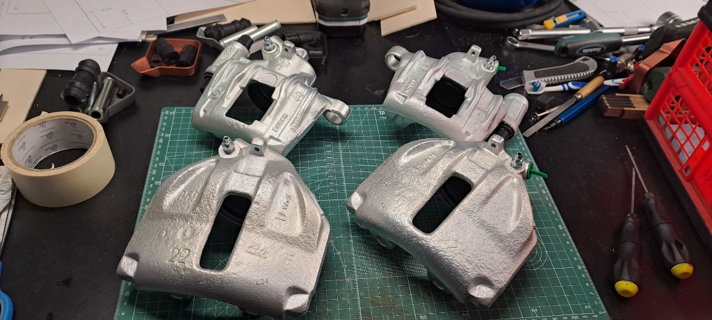 So sahen die Bremssättel aus, die ich vom Auto abgenommen hab: