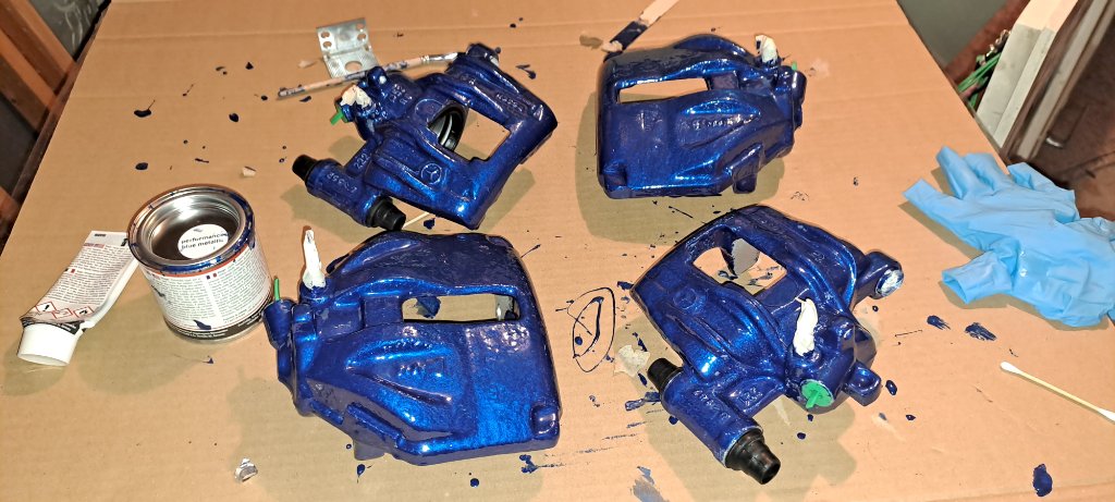 Neue sind ja "günstig genug", also besorgt: Und, weil ich ein ganz bestimmtes Vorher-Nacher-Bild im Kopf hatte, mussten die Zeitepochengerecht auch angemalt werden: Und, weil ich so blöd bin, gabs auch Stahlflex dazu: Zum einen, weil die nicht soooo viel Aufpreis zu den ollen Gummileitungen gekostet haben, zum anderen weils bei Probrake immer Gummibärchen dazu gibt. Vor allem aber, weils geil aussieht.