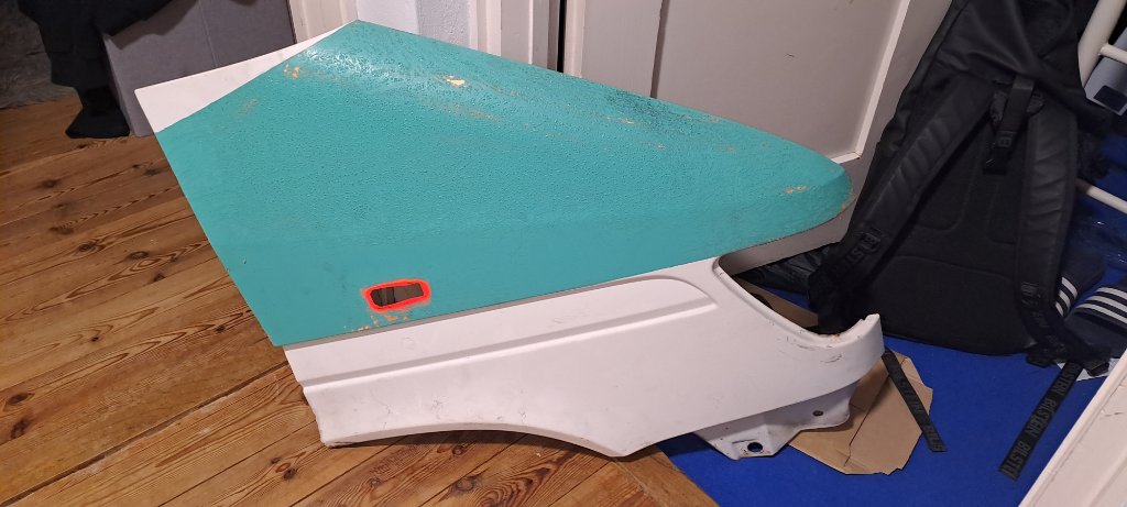 Die Kotflügel sind auch transportfähig, also habe ich die auch mit nach Hause genommen um sie dort zu bearbeiten: