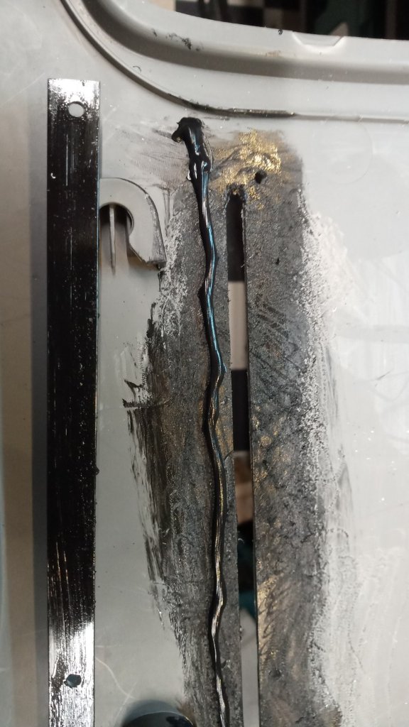 Warum? Später... Damit die Verkleidung nicht unnötig Festigkeit verliert, habe ich mit PU-Karosseriekleber