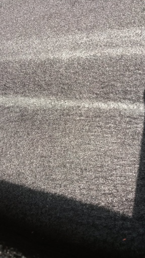Beide Verbreiterungen - wabbeliger Filz mit Stoff bezogen - habe ich mit, jeweils, einem Stück gefilzt. Bei der linken, tieferen Verkleidung muss ich aber zugeben dass es mir nicht ganz faltenfrei gelungen ist.