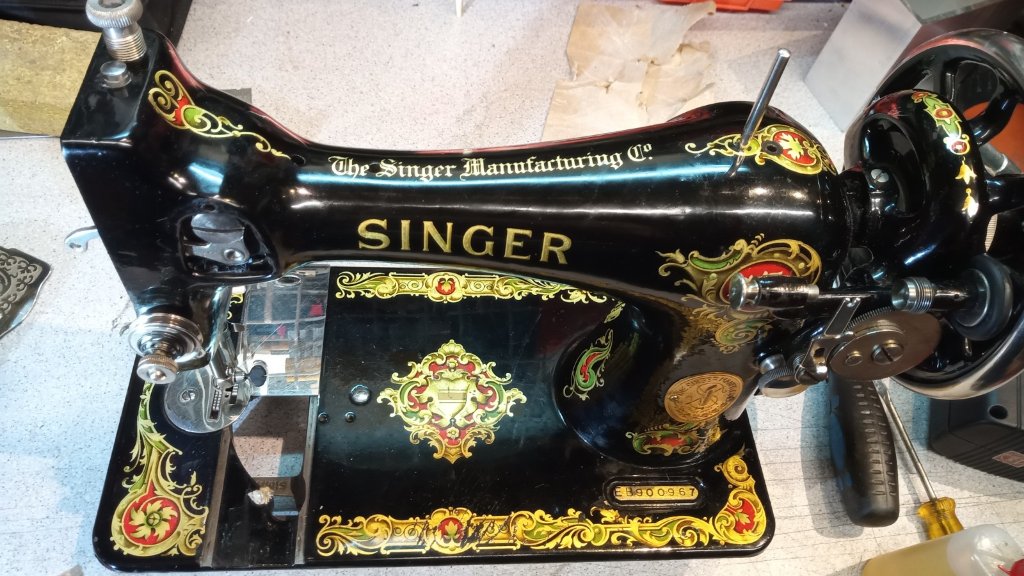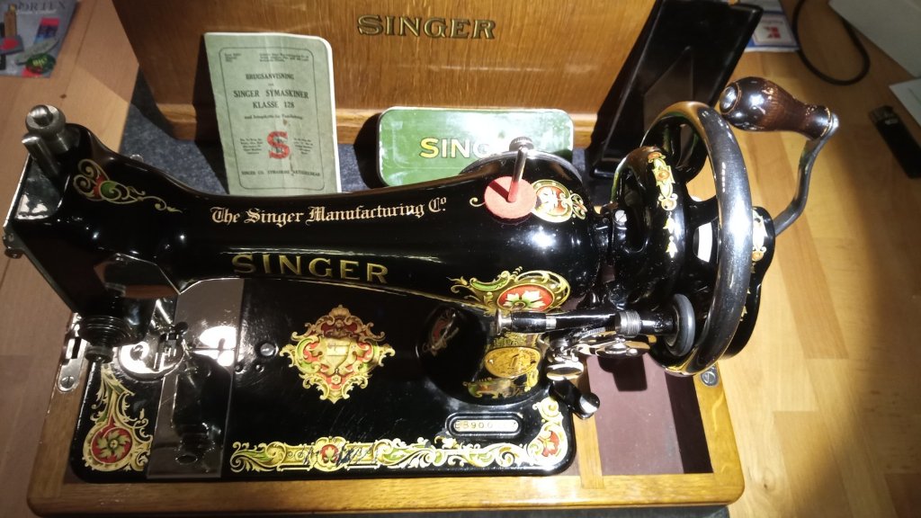 Bei der Herbsttour durch Dänemark haben wir eine 85 Jahre alte Singer im Fenster eines der dortigen Genbruk-Läden gesehen und sofort adoptiert.