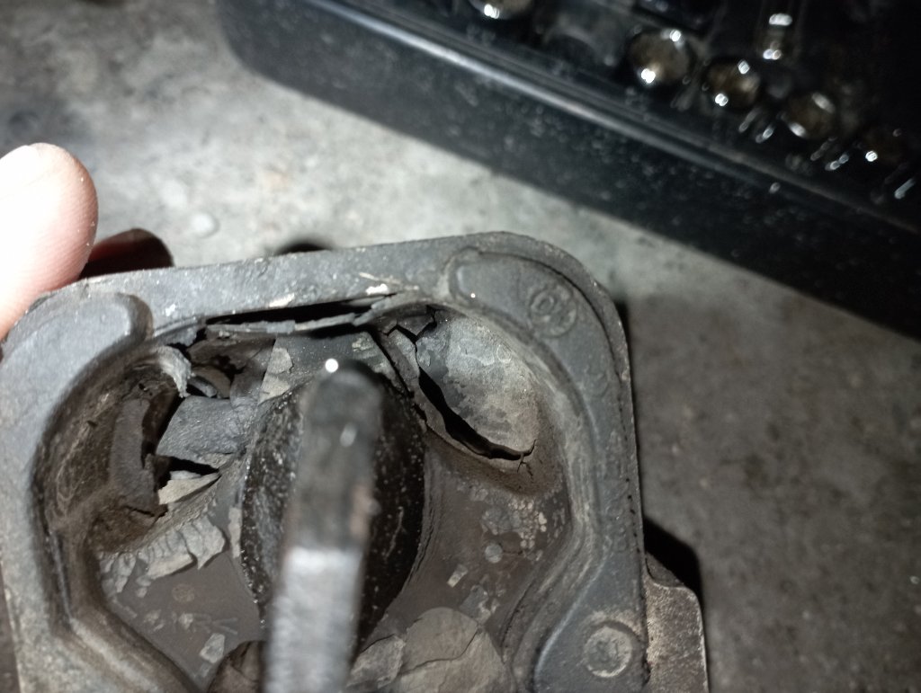 Beim Routinecheck unterm Fahrzeug festgestellt, dass das Getriebegummilager gerissen ist. Am Wochenende dann gewechselt. Einfache OP: