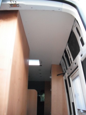 Die Hauptidee des rolos ist das man zwischem dem fahrerhaus und dem "Wohnraum" wirklich blickdichtmachen kann das keiner nachts hineinschauen kann und es nicht zu hell zum schlafen ist, weil die Sitztgruppe Später zu einem Bett umgebaut werden kann.
