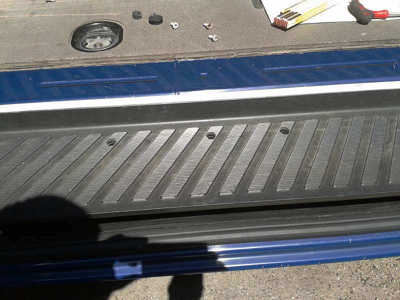 Wenn Du gaaaanz genau hinguckst, siehst Du relativ weit zur Mitte des Fahrzeuges hin (ca. 2 cm vom inneren Rand), Plastestöpsel mit der Riffelung der Trittstufe, z.B. 27, 49 und 62 cm von hinten gemessen. Wenn Du die raus hast (das ist die Hürde