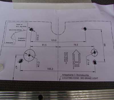 dritte Bremsleuchte abschrauben, Moosgummsitreifen entfernen, neuen Moosgummistreifen auf die integrierte Bremsleuchte kleben, festschrauben. Wassertest erst skeptisch durchgeführt, aber alles gut,passt, dicht und trocken.