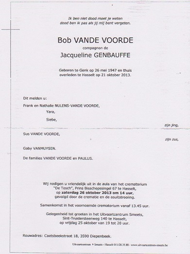 Für alle die ihm kennen möchte ich euch mitteilen das unser geliebtes Forummitglied Bob aus Belgien gestern im alter von 66jahren verstorben ist.