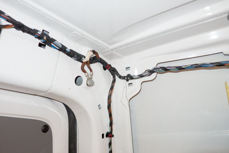 Ich bin mir nicht mehr ganz sicher, der Kabelbaum hatte links und rechts auf Höhe der Rückleuchten einen Stecker, einen hinter der mittleren Innenraumbeleuchtung, für die dritte Bremsleuchte, einen in der Türe bei der Nummernschildbeleuchtung und natürlich je einen pro Innenraumbeleuchtung. Links oben ist noch ein Masseanschluss.
