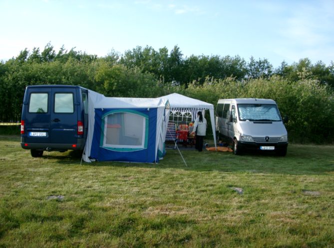 Vor einer Weile hab ich wegen einem Vorzelt gesucht und bin bei einer Variante hängengeblieben bei der ein Kuppelzelt mit 2 Eingängen verwendet wird. Ähnlich der Anbindung Moskitonetz für Schiebetür (CS war das glaube ich) wollte ich bei einem Sattler/Planenschneider nach einer Lösung in Form einer Schleuse fragen, so dass bei Regen der Durchstieg trocken bleibt... Auf dem Dach wird ein größeres Tarp befestigt und übers Zelt gespannt. So bleibt die offene Schiebetür von oben und rechts+links trocken. Das Tarp brauche ich so oder so für sonnige Momente