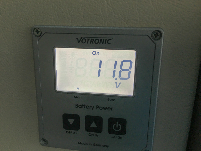 Ich habe einen Votronic Batteriecomputer verbaut, der sowohl die Spannung der Bordbatterie anzeigt, als auch die der Starterbatterie. Ich werde aber mal mit einem Multimeter die Spannung direkt an der Starterbatterie im Fußraum messen und mit der Anzeige im Votronic vergleichen.